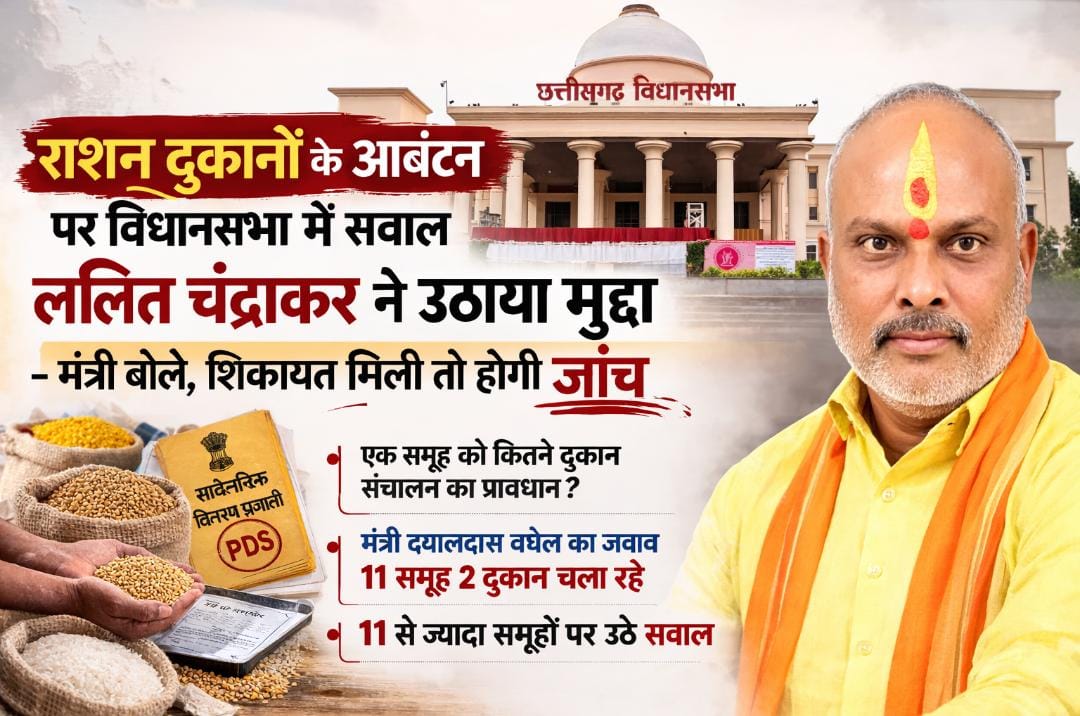 राशन दुकानों के आबंटन पर विधानसभा में सवाल, ललित चंद्राकर ने उठाया मुद्दा – मंत्री बोले, शिकायत मिली तो होगी जांच