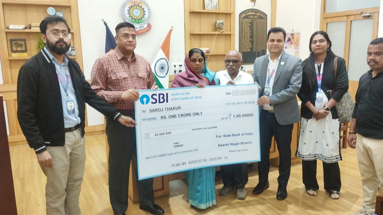 कर्तव्य के बाद भी सुरक्षा का भरोसा: शहीद आरक्षक के परिवार को 1 करोड़ की सहायता पुलिस सैलरी पैकेज से मिला संबल, एसबीआई ने सौंपा 1 करोड़ रुपये का चेक