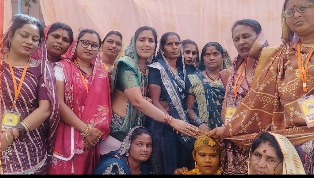 ,तेलमाटी, चुलमाटी सहित किए गए मंत्रोच्चारआयोजित आदर्श विवाह में तेलमाटी, चूल माटी तथा मायन में सभी लोग खूब नाचे। इसमें चार जोड़े परिणय सूत्र में बंधे। इनमें नंदनी थनौद संग दिलेश्वर भटगांव, सुरुचि तिरगा संग ऋतुराज डंडेसरा, टिकेश्वर भेड़सर संग हेमलता सकरौद, पूजा रिसाली संग भूपेंद्र भानपुरी का विवाह हुआ। केंद्रीय महिला समिति की अध्यक्ष प्रीती देशमुख, सचिव पुष्पा पिपरिया, जंजगीरी सर्किल महिला समिति अध्यक्ष ईश्वरी देशमुख, सचिव श्यामाबाई देशमुख, कोषाध्यक्ष पूर्णिमा देशमुख, उपाध्यक्ष रेवती वर्मा, सह सचिव ममता देशमुख, आशा देशमुख, सुनीता बेलचंदन, केवरा देशमुख, सुमन देशमुख, थलेश्वरी, प्रेम देशमुख, ललिता देशमुख, ओम देशमुख, खिलेश्वरी देशमुख, लेखा बेलचंदन, ईश्वरी देशमुख, लेखा देशमुख, कुसुम देशमुख, नागेश्वरी देशमुख, रेणुका देशमुख, विजय लक्ष्मी देशमुख, सविता देशमुख, तीरथ देशमुख, पौमिन देशमुख आदि सक्रिय रहीं।