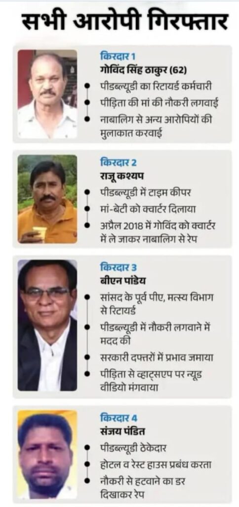 उनके साथ PWD ठेकेदार संजय पंडित ने भी कोर्ट में सरेंडर किया।बताया जा रहा है कि FIR दर्ज होने के बाद से दोनों आरोपी फरार चल रहे थे। 30 जनवरी को भिलाई महिला थाना में मामला दर्ज होते ही आरोपी भूमिगत हो गए थे।अब तक क्या हुई कार्रवाई?मामले में अब तक चार आरोपियों की गिरफ्तारी हो चुकी है।दो आरोपियों ने स्वयं कोर्ट में आत्मसमर्पण किया है।पुलिस ने आरोपियों के खिलाफ सख्त धाराओं में प्रकरण दर्ज किया है।ब्लैकमेल कर लंबे समय तक शोषण का आरोपपीड़िता पक्ष का आरोप है कि नाबालिग को कथित तौर पर ब्लैकमेल कर लंबे समय तक शोषण किया गया। पुलिस मामले की गंभीरता को देखते हुए हर पहलू की गहन जांच कर रही है।