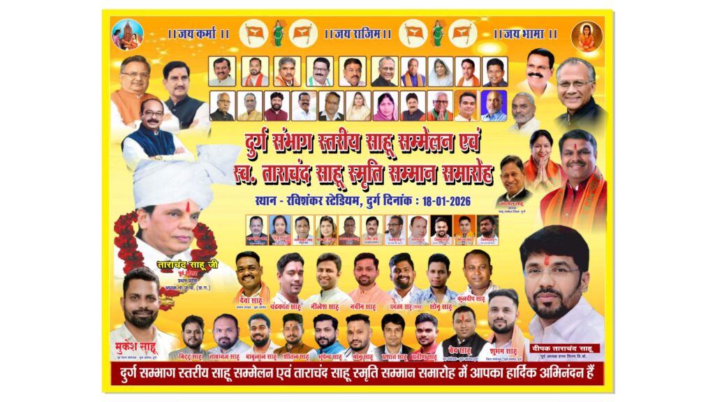 दुर्ग संभाग स्तरीय साहू सम्मेलन एवं स्व. ताराचंद साहू स्मृति सम्मान समारोह 18 जनवरी को