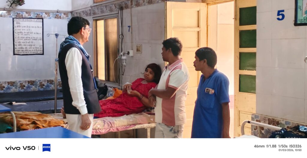 दुर्ग। श्री सत्य साई सेवा समिति दुर्ग के सम्मानित सदस्यों द्वारा जिला चिकित्सालय में सेवा गतिविधि का आयोजन किया गया। इस दौरान समिति के सदस्यों ने अस्पताल के शिशु वार्ड एवं महिला रोग विभाग में भर्ती मरीजों से मुलाकात कर उनका हालचाल जाना तथा आवश्यक सहायता उपलब्ध कराई।इस सेवा कार्य में आर. के. तिवारी, हरिश्चंद्र ठाकुर, दिलीप ठाकुर, संजय गणवीर, संजय कानखोजे, सुंदर बंसल एवं के. आर. ध्रुव सहित अन्य सदस्य उपस्थित रहे।